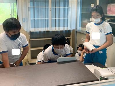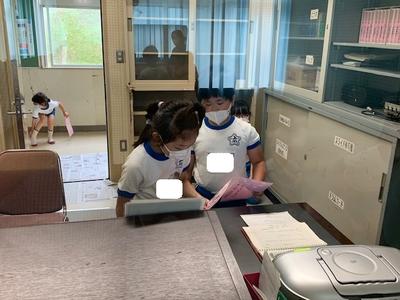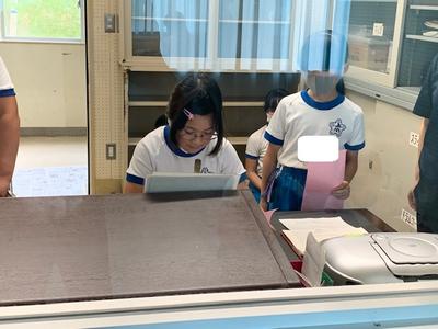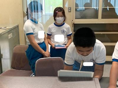 さて、写真は今日の様子です。人数が一番多い6年生は理科室の教師用の机を使ったり、長テーブルを使ったりして「密」を避ける工夫をしていました!