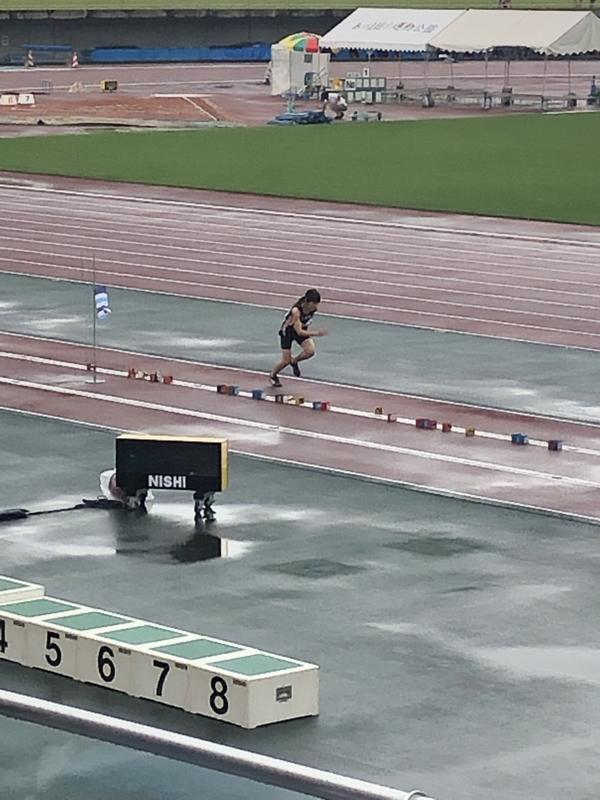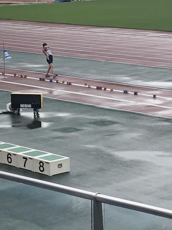 県中体連陸上大会2日目。朝から雨のコンディションの中、競技が進められています。