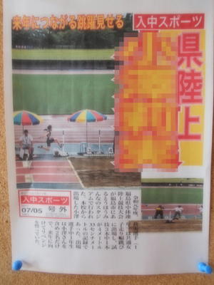 昨日行われた県陸上大会。在校生全員が応援をしていました。そこで力戦奮闘ぶりを号外にしました。今年は新聞活用に学校全体で取り組んでいます。読むだけでなく、こうして作る楽しさも感じて欲しいと願っています。各学年では里山体験のついてPCを使った新聞レポートでまとめています。乞うご期待。