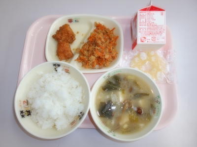 ツナごはん とり肉の唐揚げ なっこそ汁 パイナップル 牛乳 834Kcal