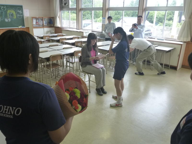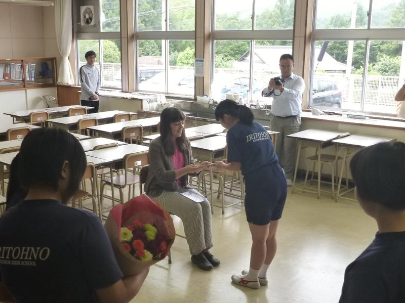 ホリー先生は旅行が大好きで、生徒たちに旅行の話をクイズ形式で質問し、とても楽しく充実した授業をしてくれました。生徒たちはいつもホリー先生が来るのを楽しみにしていました。ホリー先生は挨拶の中で、「入遠野中学校は私が担当した学校で一番小さい学校でした。でも、いつも入遠野に来るときは楽しみでドキドキしていました。」と話してくれました(もちろん英語です)。生徒たちはそれを聞いて、うんうんと頷いていました。またどこかで会えるといいですね。そしてその頃には、ホリー先生と英語で話ができるようになっていたら素敵ですね。ホリー先生、Thank you so much!!