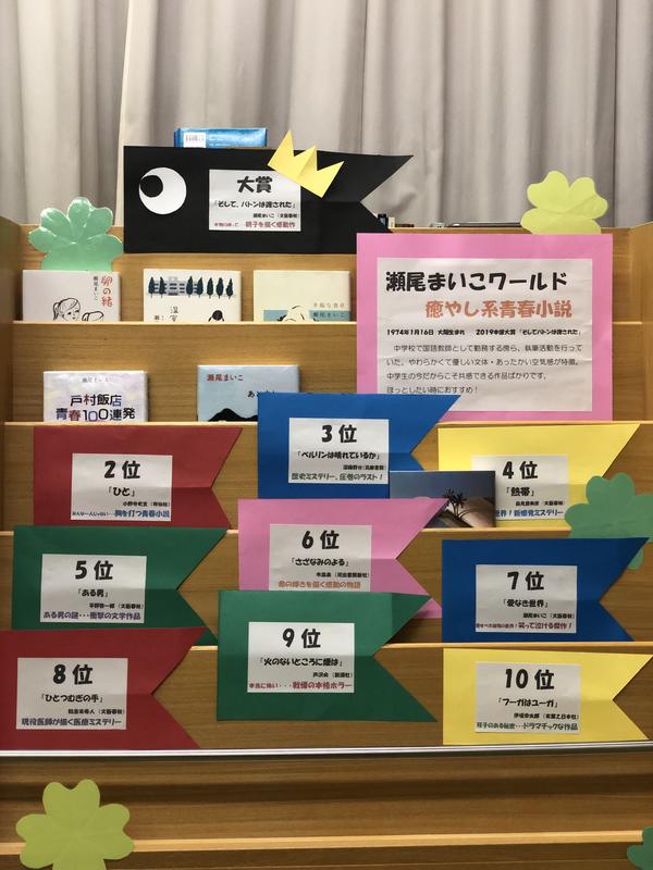 学校司書さんが、生徒たちのために「本屋大賞」特集を作ってくれました。