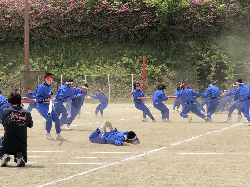 生徒綱引きは渾身の力を込めた接戦の末、紅の勝ち!