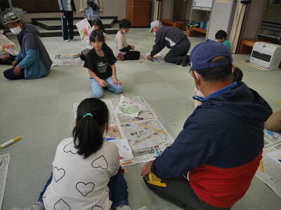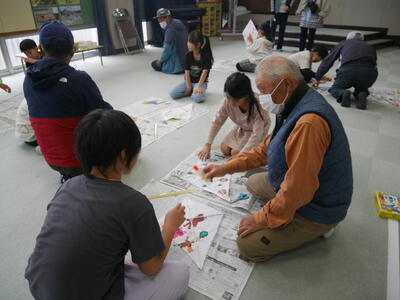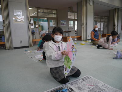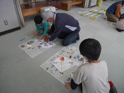地域の方々に教えていただきながら、凧づくりしました。完成したら~