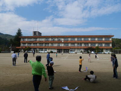 青空の下、3・4年生みんなで凧あげを楽しむことができました。