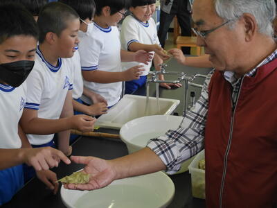 5・6年生は「遠野和紙 紙すき体験」をしました。これは楮(こうぞ)です。