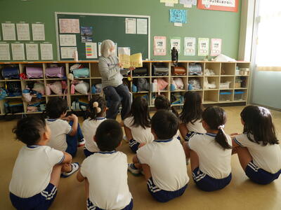朝の読み聞かせを行いました。1年生は「もこもこもこ」と「てのりぞうのパズー」を読んでもらいました。