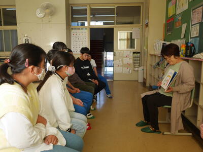 5年生は「おならうた」と「いも さいばん」を読んでもらいました。