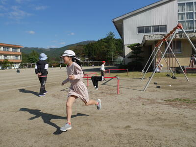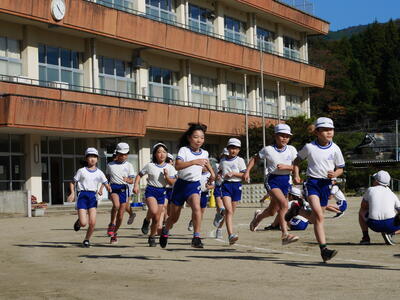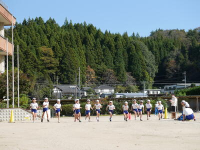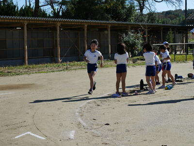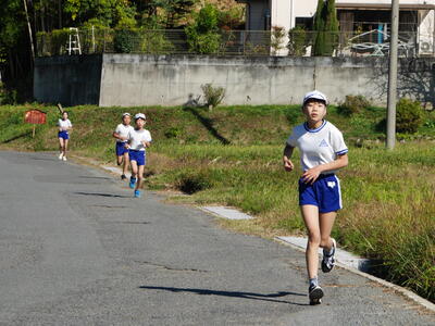 最後に校庭を1周回ってゴールです。最後までしっかり走ります。