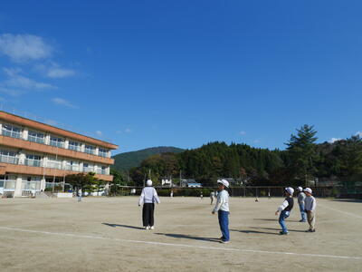 秋晴れの空のもと、校庭で活動する班が多かったですね。