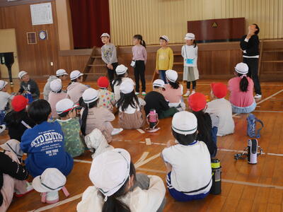 最後は体育館で活動の振り返りをして、おしまいです。しっかり感想も言えてすばらしかったです。