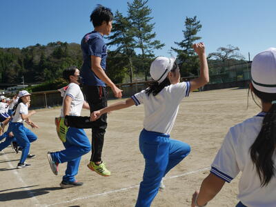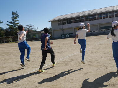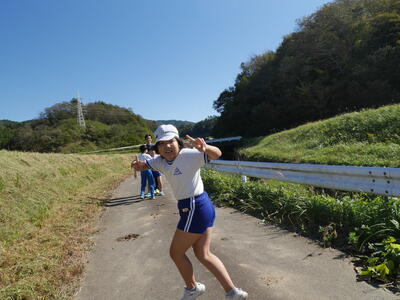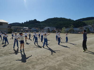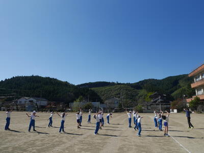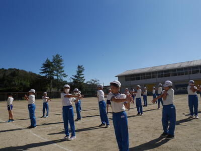 澄みきった青空のもと、5・6年生が体育をしていました。