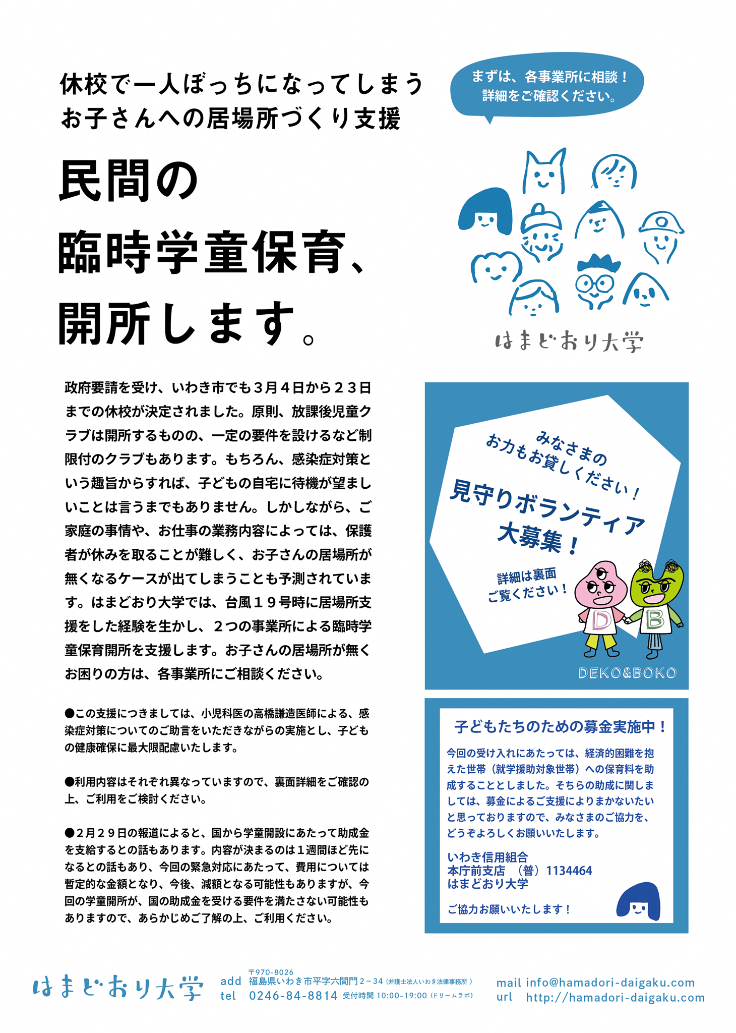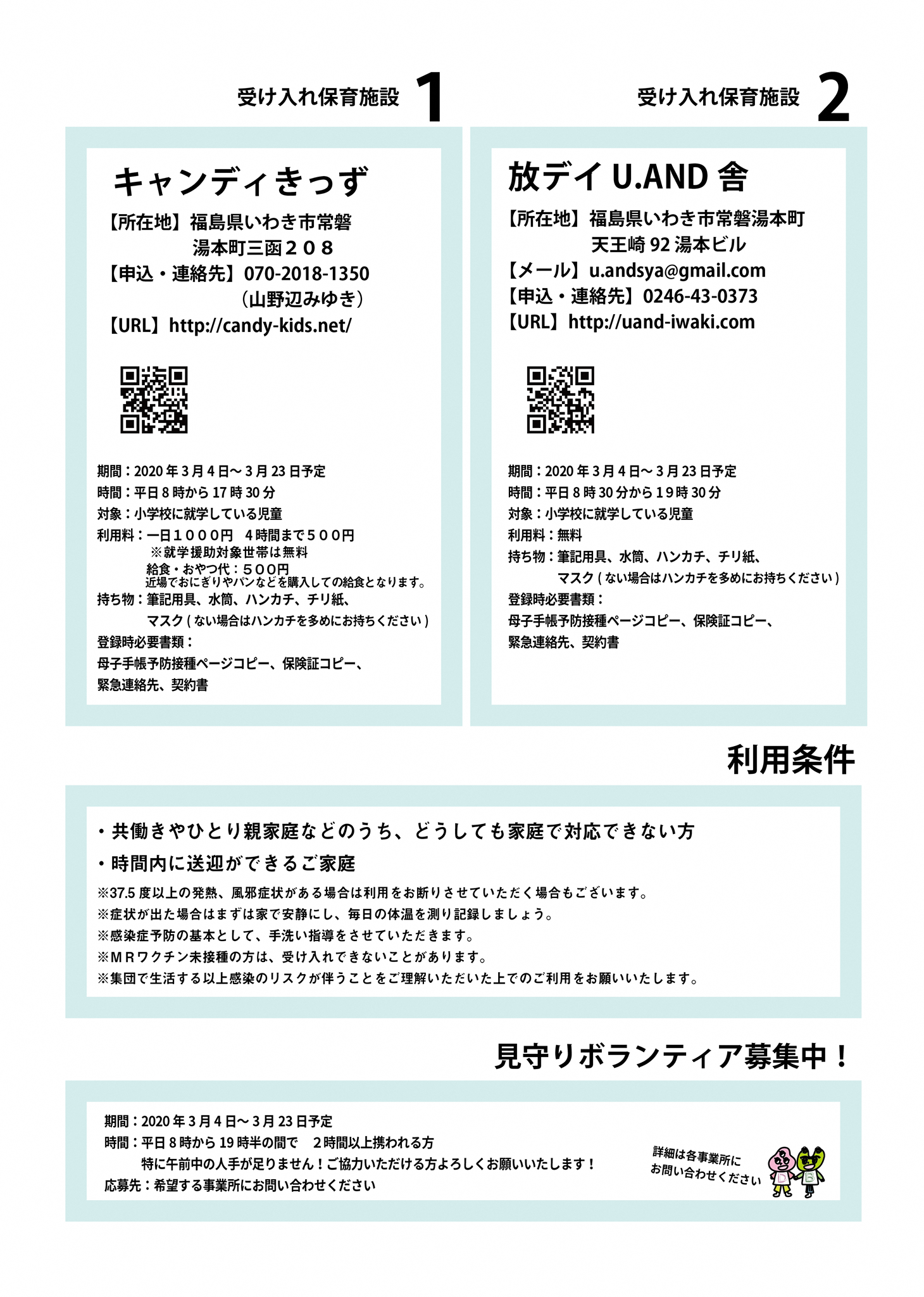2020年3月9日 08時47分いわき市内での新型コロナウイルス感染症患者の発生に伴う今後の予定ですが、3月9日午前9時現在では、すでにお知らせしているとおりです。変更はありません。