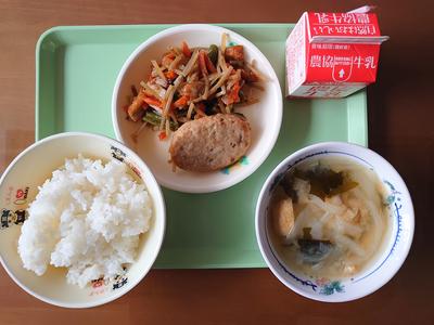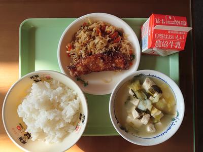 2021年1月12日 11時39分五目きんぴら、わかめと玉葱の味噌汁です。県産食材を用いての和食献立です。今年最初の給食のお味はいかがでしょうか?