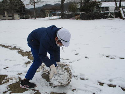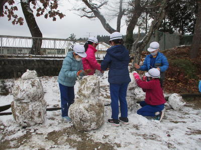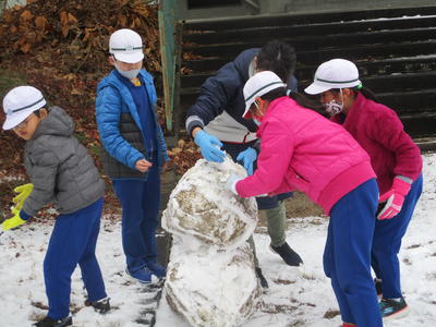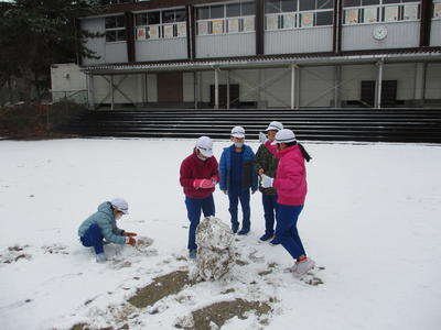 2021年1月12日 11時45分と、子どもたちは思っているのでは?校庭が雪で覆われたのは、今の4年生が1年生の時でした。そのときは一日溶けずに雪があったそうですが、今日の雪は子どもたちの遊びが終わったら、静かに消えていったのでした。みんながお利口さんだから、ご褒美に雪を降らせてくれたのでしょうね。
