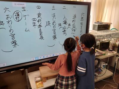 2021年1月13日 14時28分3・4年生は6校時に話し合いをしていました。6年生を送る会の役割分担や内容を決める話し合いです。本校には5年生の在籍がないため、6年生を送る会の進行等、すべて3・4年生で行わなくてはなりません。大きな学校ではなかなかできない体験です。今日は電子黒板を使って、最先端の話し合いかと思いきや、「〇〇鬼がいいです。」と、内容については昔ながらの遊びのようで、まさしく本校のめざすデジタルとアナログの融合だなぁと感じた次第です。