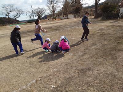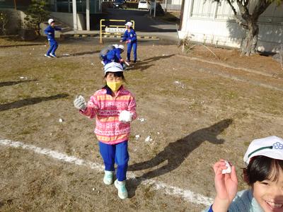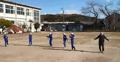 2020年12月18日 11時04分会津地方は今日も大雪で難儀しているのに、ここいわき市では降り注ぐ陽光に誘われて、全校児童が遊びに余念がありません。3年生は今日もなわとびで担任の先生とのバトルです。