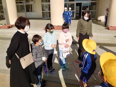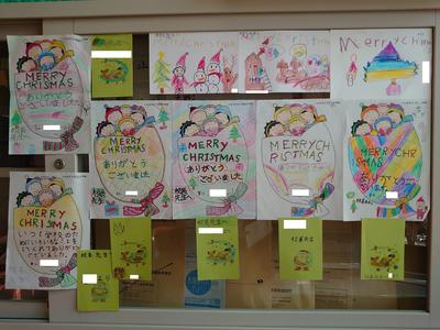 2020年12月23日 10時45分休憩時間にぞろぞろとやってきた皆さん、実はLittleSANTAさんたちでした。職員室で教頭先生にクリスマスカードを渡して、みんなで一緒にMERRY CHRISTMAS!