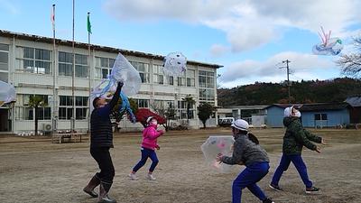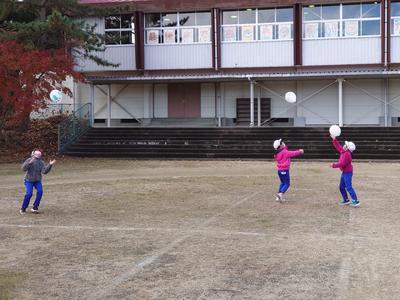 2020年12月14日 10時47分3年生が理科の時間に作った風船を、風に乗せて空に飛ばしていました。校庭で打ち上げると時々風が吹いてきて、いい感じで遊んでいるように見えます。でも、空気の動きを可視化するのが目的です。今日も楽しく学んでいる子どもたちです。