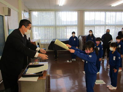 2020年12月14日 11時02分あいさつスター、木工工作コンクール、野鳥週間ポスターコンクールの賞状を伝達しました。みんなとてもよく頑張りましたね。みんなで温かい拍手をしてたたえました。でも、賞状がない人だってがんばったのです。胸をはりましょう。次はきっとあなたが入賞する番ですよ。