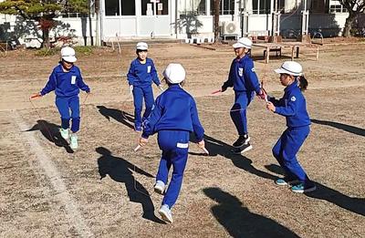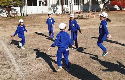 2020年12月15日 10時36分休憩時間に陽光に誘われた子どもたち。なわとびに余念がありません。今日はダンスを交えてなわとびを跳んでいました。器用ですね。楽しさを貪欲に追求する子どもたちです。