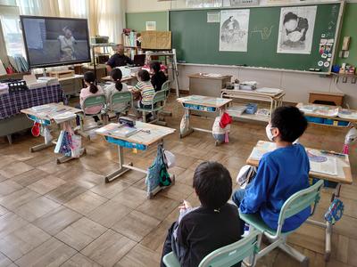 3・4年生は道徳。ビデオ教材を見て考えています。