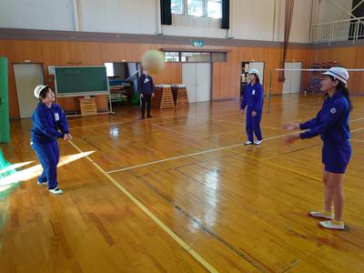 6年生はバレーボールのパスの練習。ボールが家庭用でした。柔らかくてけっこう難しいんですよね。