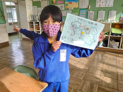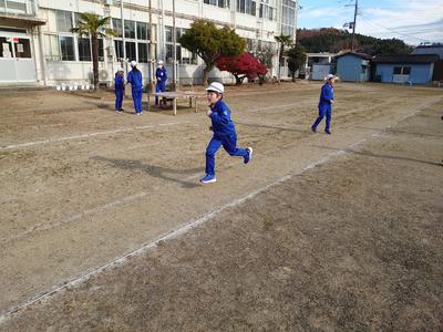 2020年12月11日 11時30分校内持久走大会の練習の記録用にマラソンカードを渡します。一周するごとに1つ染めていき、100周走って一枚終わると教頭先生から、さらに100周走って二枚終わると、校長からシールをもらえます。一周140メートルの校庭を200周するということは、28キロメートル走るということ。本校から直線距離で大熊町までの距離とほぼ同じです。すごいことですねぇ。大変立派です。