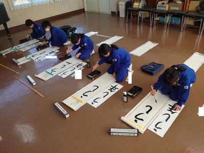 2020年12月11日 10時52分全校児童で書き初めの練習を行いました。1・2年生は硬筆を教室で、3年生以上は音楽室で毛筆です。一時間以上の時間をかけて、書き上げた枚数は2枚。いかに集中して、ゆっくりと筆を運んでいるかがわかります。この呼吸ができれば、一枚書くたびに上手になれます。冬休み中も意識を集中して、筆の呼吸一の型 書き初め でお願いします。