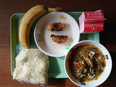 2020年12月11日 11時05分味噌ラーメン、しそ餃子、バナナつきです。野菜を入れ、栄養バランスを考えました。よくかんで残さず食べてくださいとのことです。ラーメンを飲み込むまえに、よくかんでくださいね。