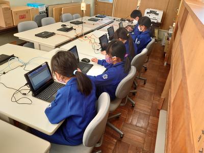 2020年12月14日 08時48分3年生がコンピュータ室でプログラミングの初歩を学んでいます。ソフトの指示に従って入力していくと、さて何ができるのでしょうか?子どもたちがパソコンを使いこなすスピードは、驚くほど速いですね。