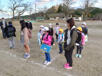 2020年11月26日 15時48分みんな元気に帰ってきました。よかったです。デコ屋敷で作ったのはミニだるまだったそうです。今日はたくさんお家の人にお話ししましょうね。