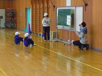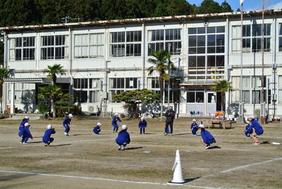 2020年11月27日 10時30分体育館の室温は、9時時点で8度でした。外よりも底冷えがして寒いのですが、1・2年生は元気いっぱいに、跳んだりはねたりしていました。自分たちで考えた障害物走のコースを走ってタイムを競うという体育の授業でした。頑張りましたね。