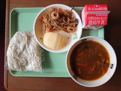 2020年11月27日 11時34分昆布とちくわの煮びだし、リンゴ付きです。小学生の食べるものですから、さほど辛くはありませんが、今日のように寒い日にはありがたい食べ物ですね。カレーを服に飛ばさないように上手に食べましょう。
