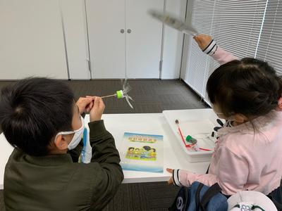 2020年11月26日 09時48分今日の実験は、風力発電です。1・2年生でもよくわかるように、風車を使って実験します。どうやったら風車はよく回るのか、よく考えて、試してみましょう。