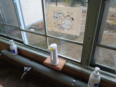2020年11月26日 14時23分用務員さんが、手洗い液の自動噴霧器を置く台を、水飲み場に作ってくださいました。これでみんな使いやすいと思います。用務員さん、ありがとうございます。いい仕事してますねぇ。