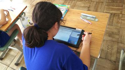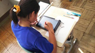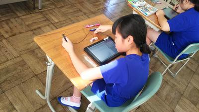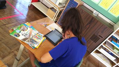 2019年11月25日 10時56分教室にノートパソコンの画面を取り外して、タブレットのように使っています。今日はデジタル教科書を見たり、ドリルをしたりします。子どもたちはすでに使い方をマスターしていて、飲み込みの速さに感心します。