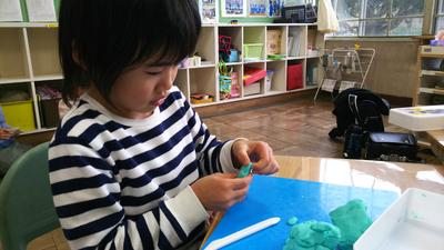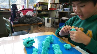 一方その頃、1・2年生は、日課となっている粘土細工にいそしんでいたのでした。何ができるのかしらん?