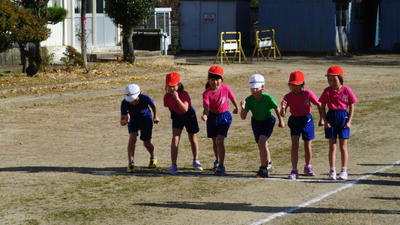 走り続ける子どもたちもいます。今日も元気な子どもたちです。