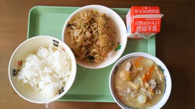 2019年11月20日 11時36分白身魚のごまフライ、ご汁です。持久走大会で疲れた体にしみこみます。美味しくいただきましょう。
