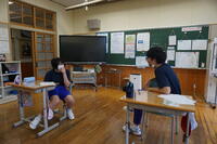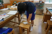 ・2年生は技術の授業で、いろいろな木材を切って感想を書きました。力の入れ方や木材の種類によって、力の入れ方も変わることなどを学びました。