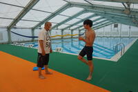 ・最後は丸い木材(竹)にも挑戦しました!最後は、手が筋肉痛になっていました。お疲れ様でした。