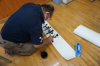 ・講師の先生が、題字を書いてくださいました!あっという間に書き上げる姿に、全員がみとれていました。
