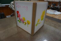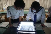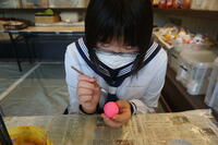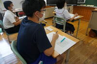 ・2年生の美術では、毎年恒例の行灯づくりが始まりました。川前駅で行われる納涼屋台に出展するため、デザインを考えながら制作していました。夏の花を調べながら、絵付けをしました。