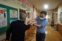 ・訓練後には、職員研修を行い、「さすまた」の使用方法や護身術を学びました。職員も緊張感を持って、研修に参加しました。