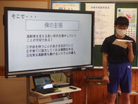 〇6月27日(月) 3年生の授業で「スピーチで社会に思いを届ける」と題して、日本の課題となっている少子高齢化についてスピーチを行いました。