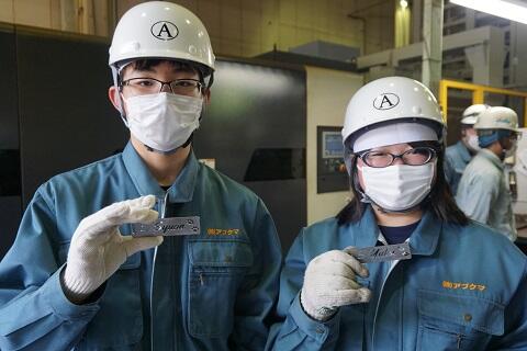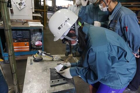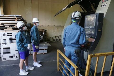 はじめに代表取締役の小松崎様からあいさつをいただき、続いて総務課の大和田様から会社の概要や沿革についての説明をいただきました。工場見学ではトラック部品のプレス板金加工、レーザー加工、溶接、塗装の様子を見せていただきました。また、子どもたちはプレス加工などの体験もさせていただきました。子どもたちは目を輝かせながら真剣に説明を聞き、自分の地元にすばらしい企業があり、多くの社会人がそこで働いていることを再確認していました。