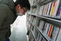 午後は移動図書。気になる本を探しています。好きなジャンルは・・・。できるだけ、多くの本に親しみたいですね。