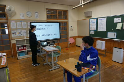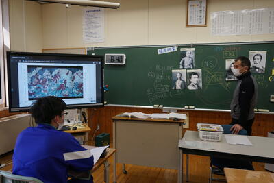 中2国語の時間。「評論文と説明文」についての学習です。本時では、レオナル・ド・ダビンチの「最後の晩餐」についての文章を読み、文の構成についてとらえました。