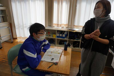 放課後は、顧問の先生とマンツーマンでの部活動。体育館は0℃と室内でも寒さが厳しいですが、汗を流して活動しています。